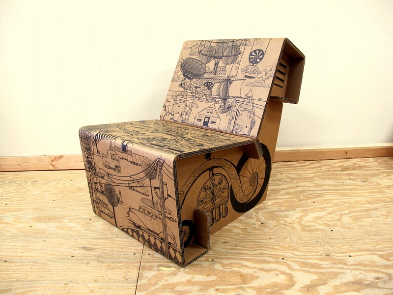 Chairigami, projekt a společnost Zacha Rotholze z amerického New Havenu, vyrábí neotřelý lepenkový nábytek s nápaditým designem. Ačkoli pohodlností úplně nevyniká, je lehký, recyklovatelný a dá se jednoduše složit a zase zpět rozložit do plochého stavu. Snadná rozložitelnost a přemístitelnost nábytku je právě jednou z jeho hlavních předností – při skládání nejsou třeba žádné vruty ani lepidlo.