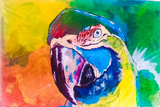 Aru jsem namaloval protože jsem si nemohl pořídit živého papoucha. Teď po 3 letech jsem s tím už smířený tak ji posouvám dál.