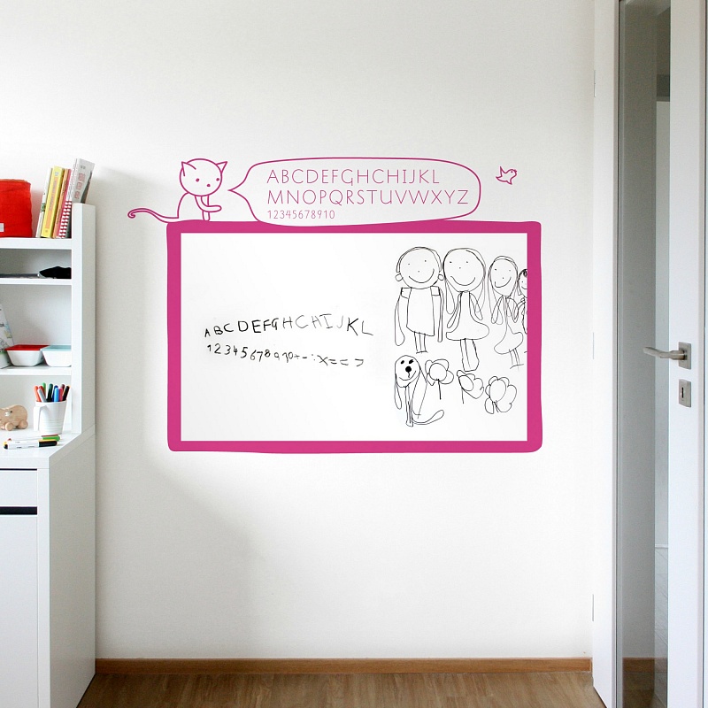 Dívčí popisovatelná samolepicí tabule do pokoje.