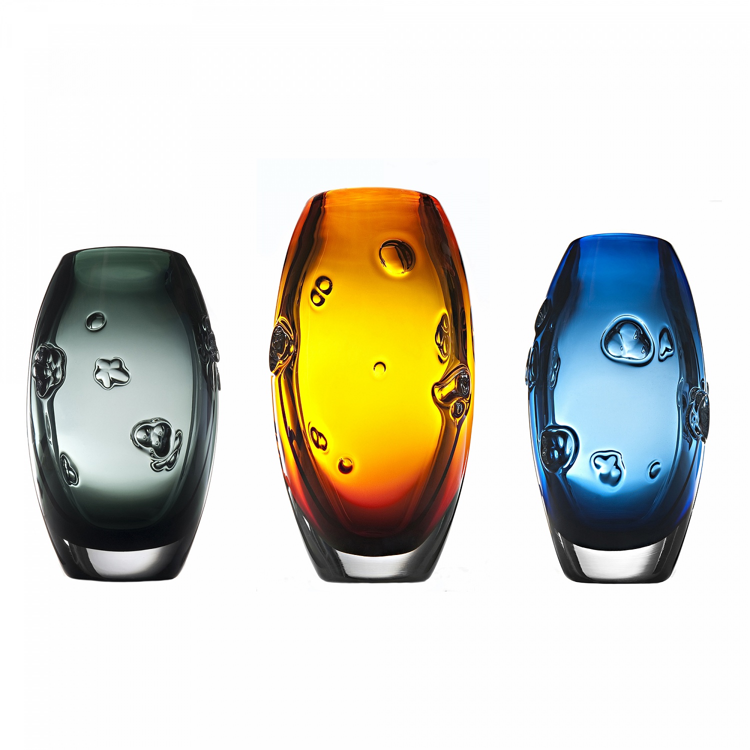 Skleňená váza foukaná z ruky, bez formy. Každý kus je 100% originál.