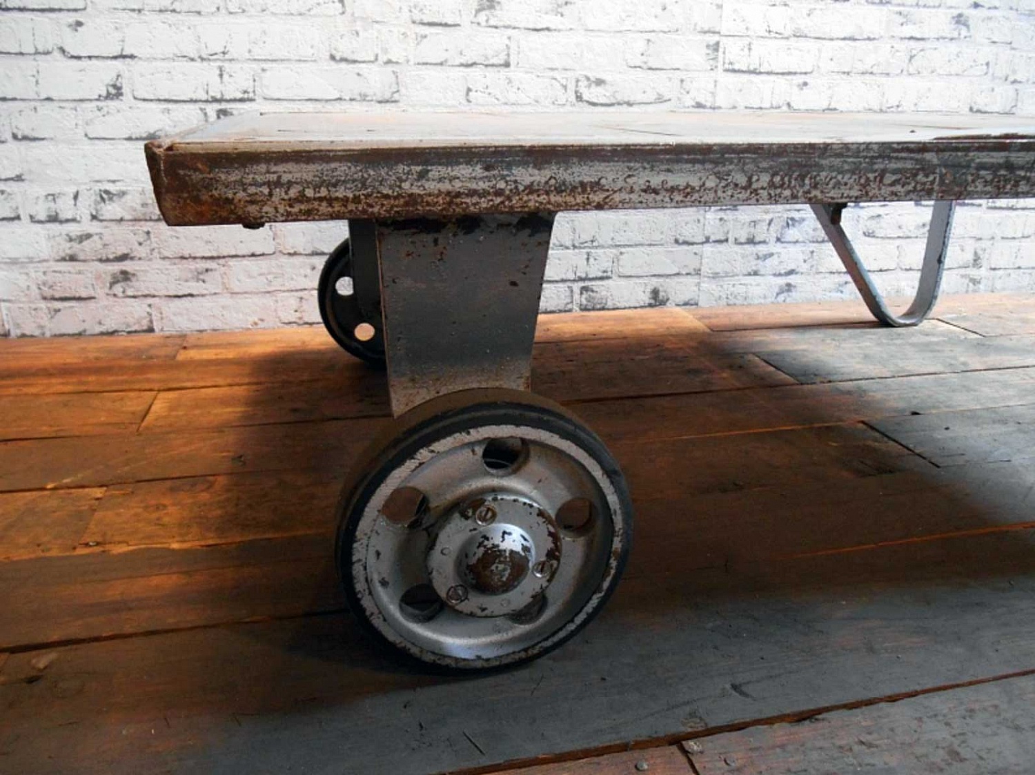 Industriální konferenční stolek, původní konstrukce, restaurovaný uměleckým truhlářem, rozměry 106cm x 70cm x výška 32 cm.