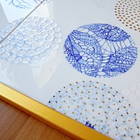 Obraz je malovaný tradiční technikou malby kobaltem pod glazuru, která je doplněná malbou pravým zlatem a matnými efekty na glazuře.