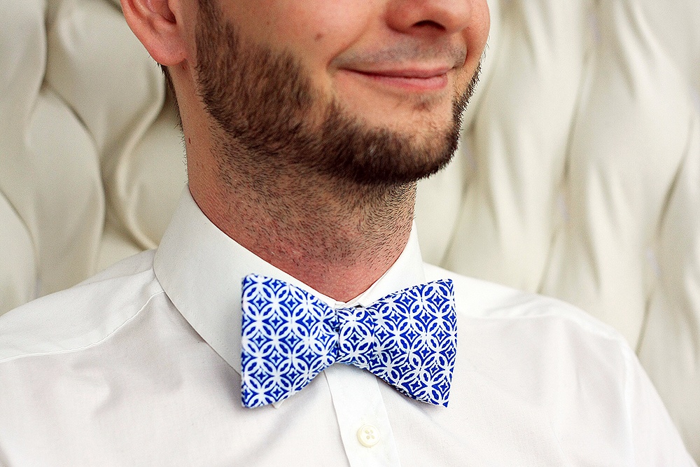 Jedinečný ručně šitý motýlek s originálním modrobílým designem. Motýlek je vázací a má nastavitelnou velikost, nemusíte se tak bát, že vám nebude sedět. Je ručně a s láskou ušitý ze 100% bavlny.