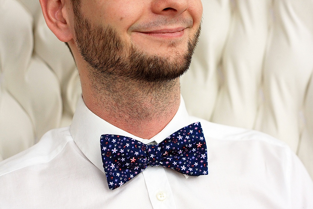 Jedinečný ručně šitý motýlek s originálním květinovým designem. Motýlek je vázací a má nastavitelnou velikost, nemusíte se tak bát, že vám nebude sedět. Je ručně a s láskou ušitý ze 100% bavlny.